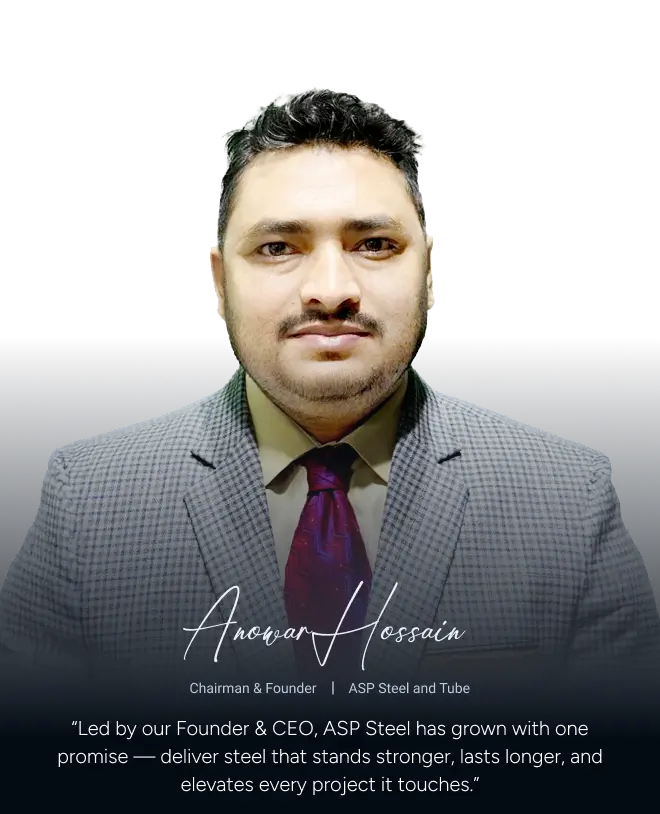 Starting his journey with a deep understanding of metal sourcing and industrial manufacturing, Anowar Hossain built ASP Steel to solve a real problem in the market — consistent quality and reliable delivery. Over the years, his leadership has transformed ASP Steel from a small local supplier into a trusted name serving factories, builders, and large-scale infrastructure projects.